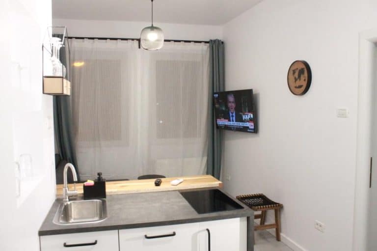 Apartamentul oferă cazare pentru două până la patru persoane. Unitatea de cazare este compusă dintr-un dormitor cu pat dublu, un living în care se găsește o canapea expensibilă, baie și bucătărie complet echipată.